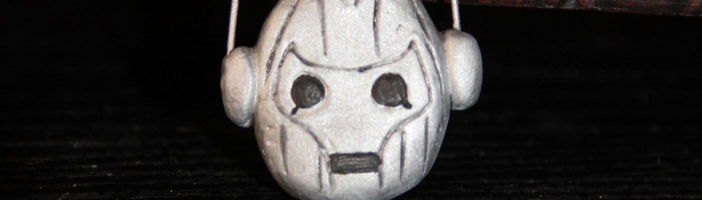 1 1/2″ Cybermen head from Doctor Who. Made from polymer clay.
