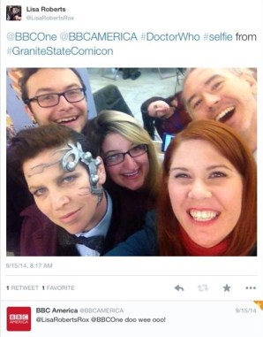 I also ended up getting into a cute selfie taken by my friend Christine. I tweeted it to BBC America. They responded. That was my first of three interactions with BBC America.