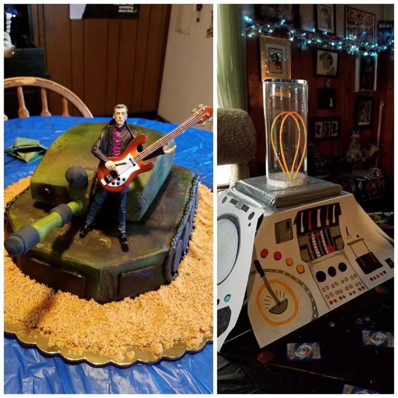 Most people that know me well, know that every February I try to throw CJ, my amazing, wonderful, perfect spouse a themed birthday party. CJ is like a child when it comes to his birthday. He will run around yelling “BIRTHDAY!” all day until someone pays attention to him. So far I have done Sherlock, IT Crowd, Avatar the Last Airbender, Rick and Morty and now Doctor Who. CJ’s fave Doctor is 12, Peter Capaldi. I decorated the entire house to look like the inside of the Tardis, complete with console, Pin the Eyebrows on Peter, and we even had a birthday cake shaped like a tank. As party favors, every person had black sunglasses with “attack eyebrows ” on them. (Remember those – they make another appearance soon). Everyone came dressed in cosplay, which wasn’t hard since most people we know are Whovians! It was so amazing to be able to bring so many smiles on so many faces – especially CJ’s.
